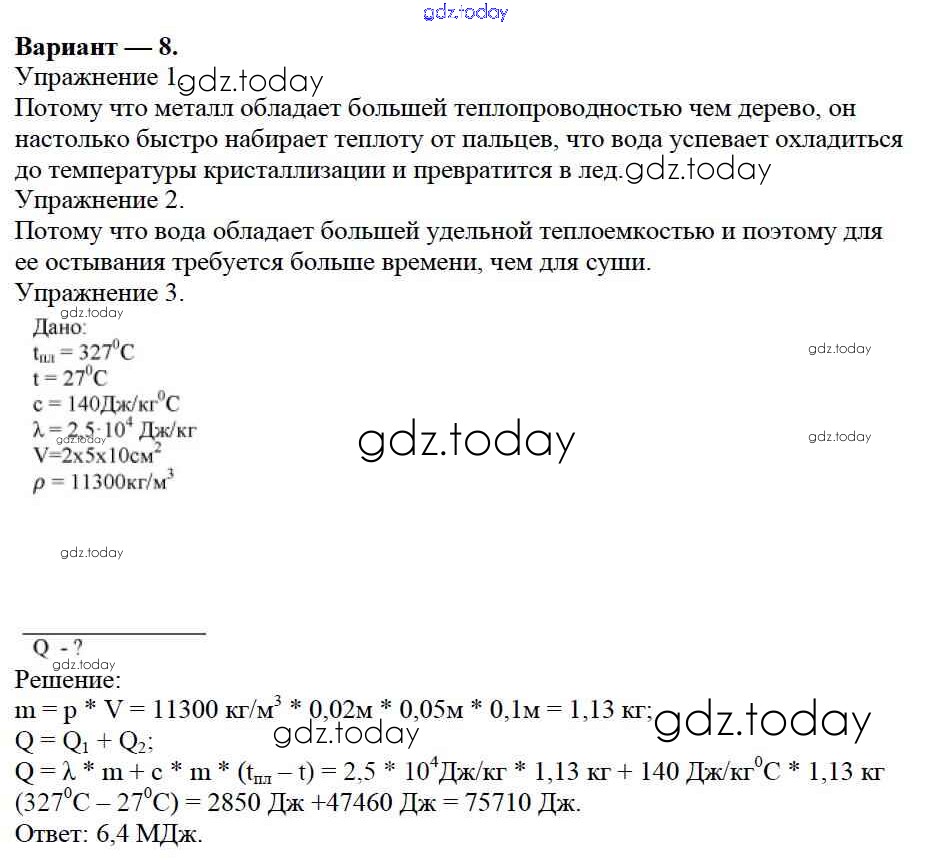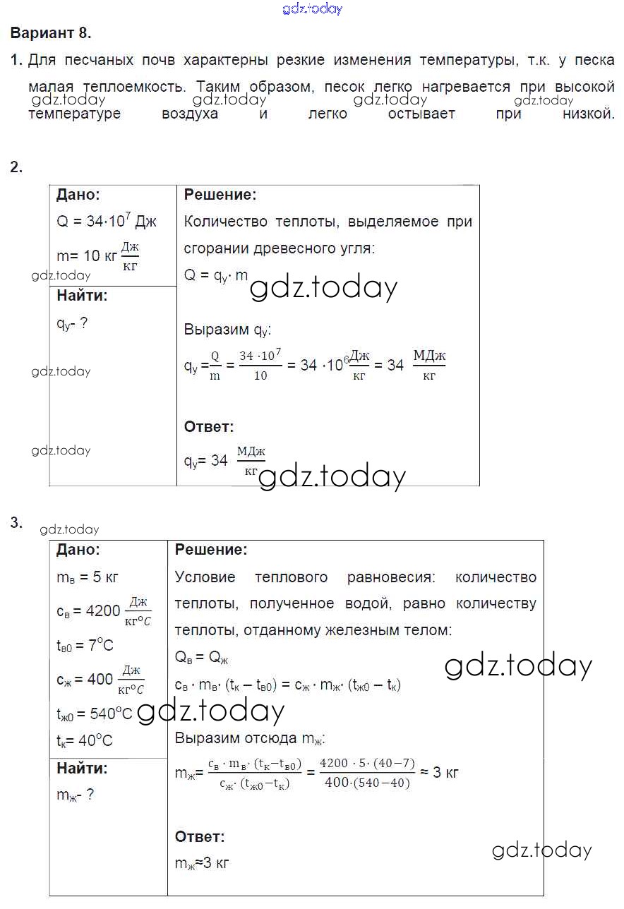 Ответы к СР №3. Количество теплоты. Энергия топлива. Варианты Решение к самостоятельным работам 8 Дидактическим материалам по Физике для 8 класса Марон Дрофа Вертикаль 2016