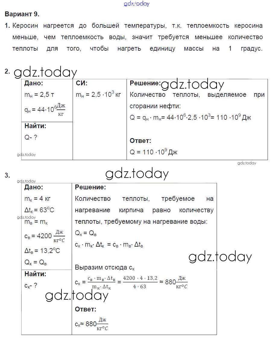 Ответы к СР №3. Количество теплоты. Энергия топлива. Варианты Решение к самостоятельным работам 9 Дидактическим материалам по Физике для 8 класса Марон Дрофа Вертикаль 2016
