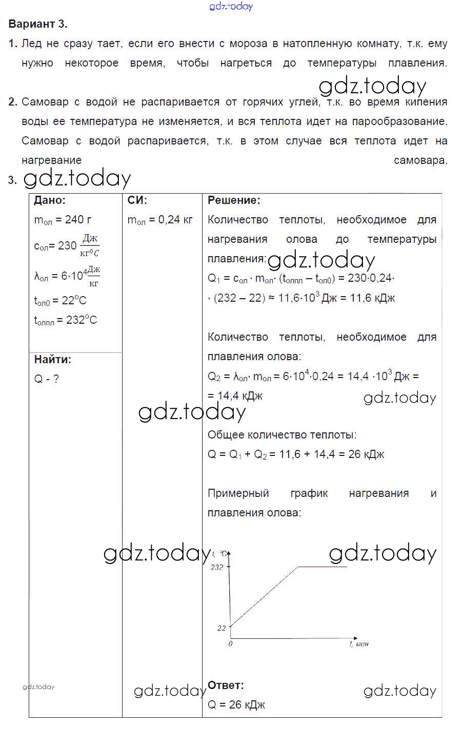 Ответы к СР №4. Плавление и отвердение. Варианты Решение к самостоятельным работам 3 Дидактическим материалам по Физике для 8 класса Марон Дрофа Вертикаль 2016