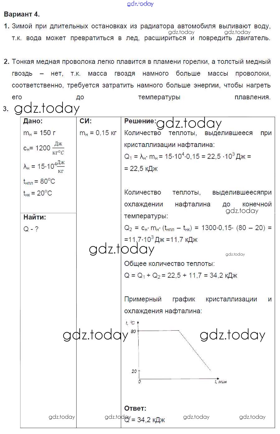 Ответы к СР №4. Плавление и отвердение. Варианты Решение к самостоятельным работам 4 Дидактическим материалам по Физике для 8 класса Марон Дрофа Вертикаль 2016