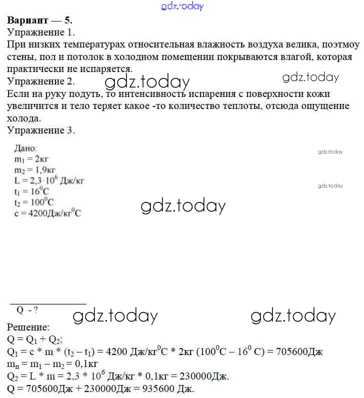 Ответы к СР №5. Испарение и конденсация. Варианты Решение к самостоятельным работам 5 Дидактическим материалам по Физике для 8 класса Марон Дрофа Вертикаль 2016