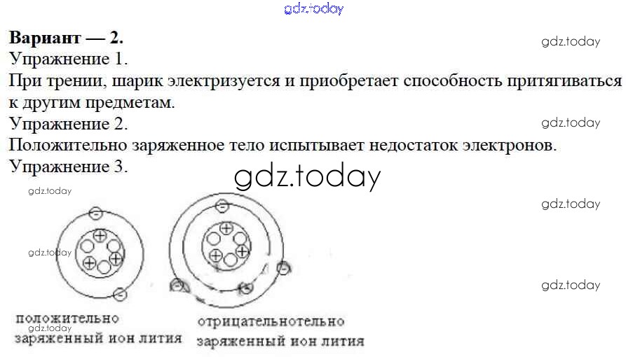Ответы к СР №6. Электризация тел. Электрическое поле. Строение атома. Варианты Решение к самостоятельным работам 2 Дидактическим материалам по Физике для 8 класса Марон Дрофа Вертикаль 2016