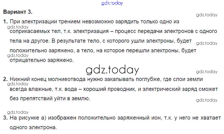 На страницах сайта gdz.today вы найдете учебный и вспомогательный материал, направленный на улучшения знаний школьной программы. ГДЗ - онлайн мир знаний СР №6. Электризация тел. Электрическое поле. Строение атома. Варианты Решение к самостоятельным работам 3 Дидактическим материалам по Физике для 8 класса Марон Дрофа Вертикаль 2016