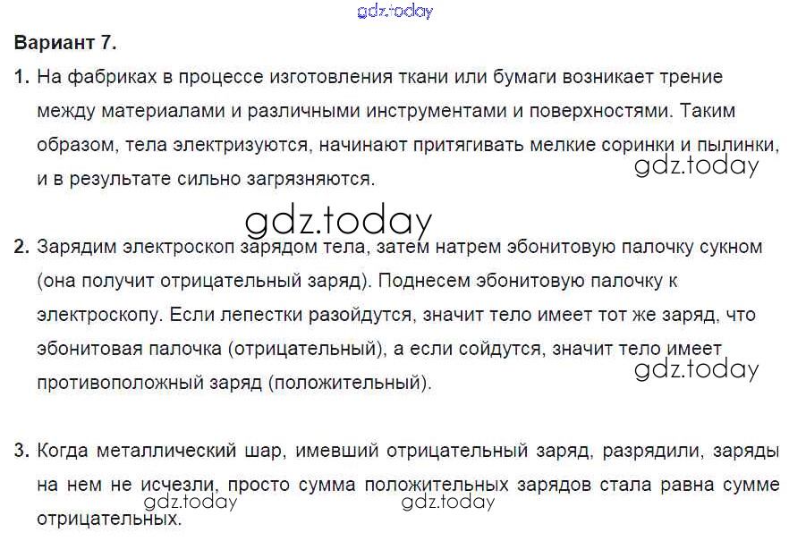 На страницах сайта gdz.today вы найдете учебный и вспомогательный материал, направленный на улучшения знаний школьной программы. ГДЗ - онлайн мир знаний СР №6. Электризация тел. Электрическое поле. Строение атома. Варианты Решение к самостоятельным работам 7 Дидактическим материалам по Физике для 8 класса Марон Дрофа Вертикаль 2016