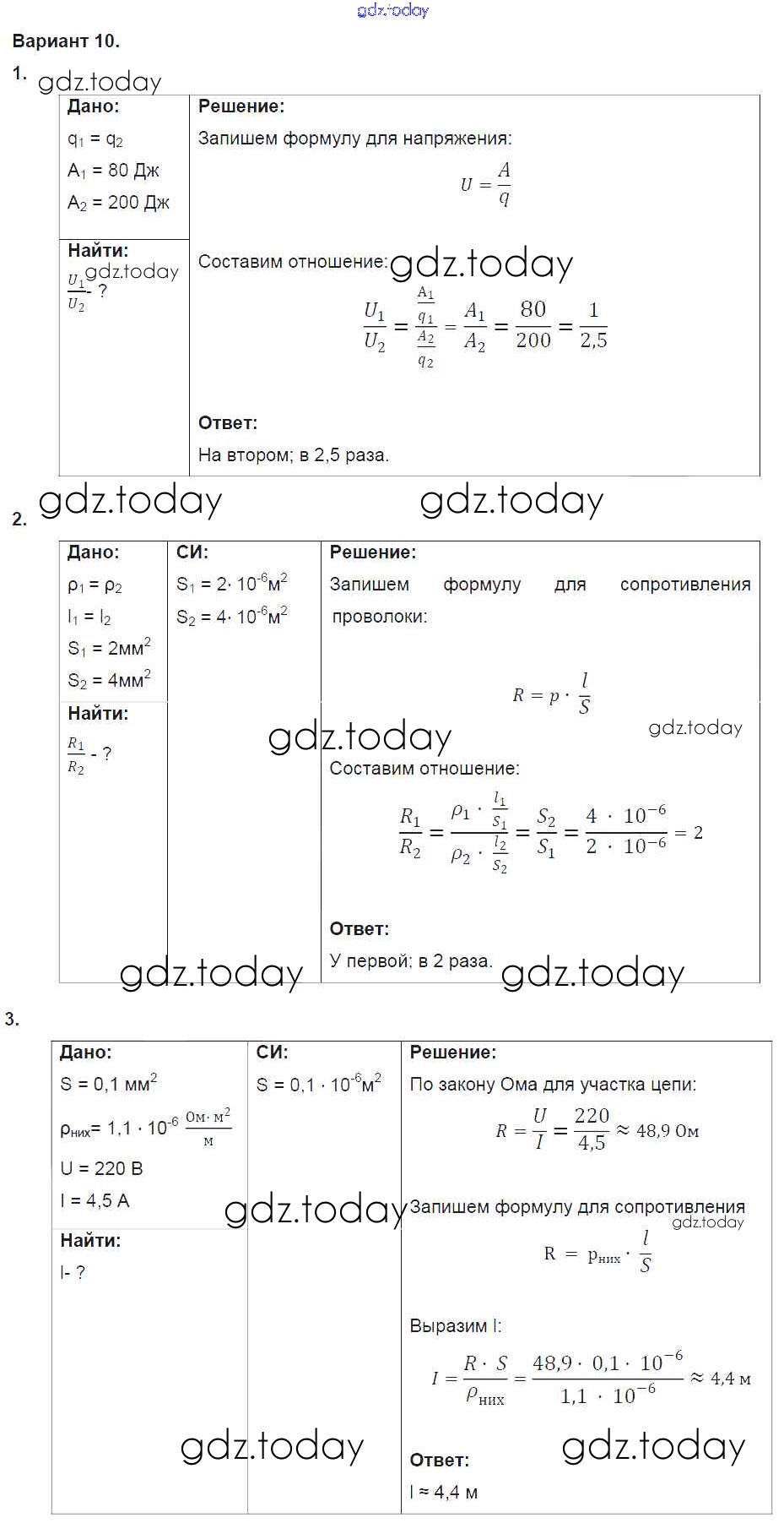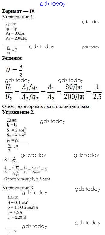 Ответы к СР №8. Сила тока. Напряжение. Закон Ома для участка цепи Варианты Решение к самостоятельным работам 10 Дидактическим материалам по Физике для 8 класса Марон Дрофа Вертикаль 2016