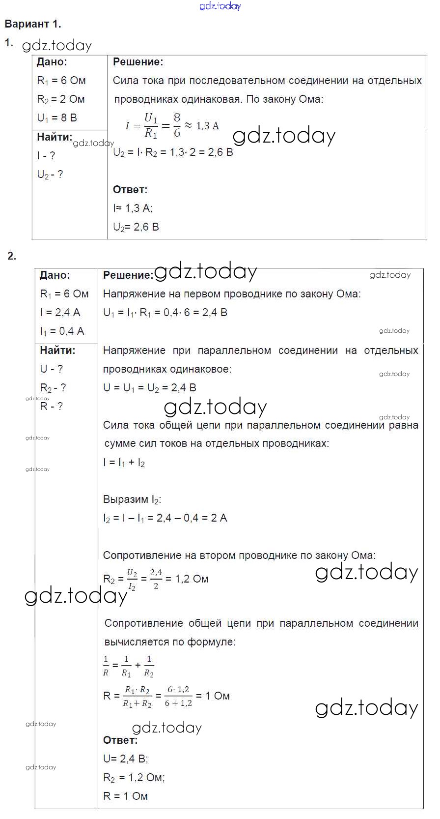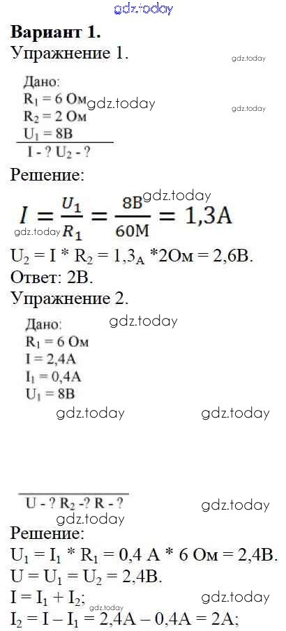 Ответы к СР №9. Соединение проводников. Варианты Решение к самостоятельным работам 1 Дидактическим материалам по Физике для 8 класса Марон Дрофа Вертикаль 2016