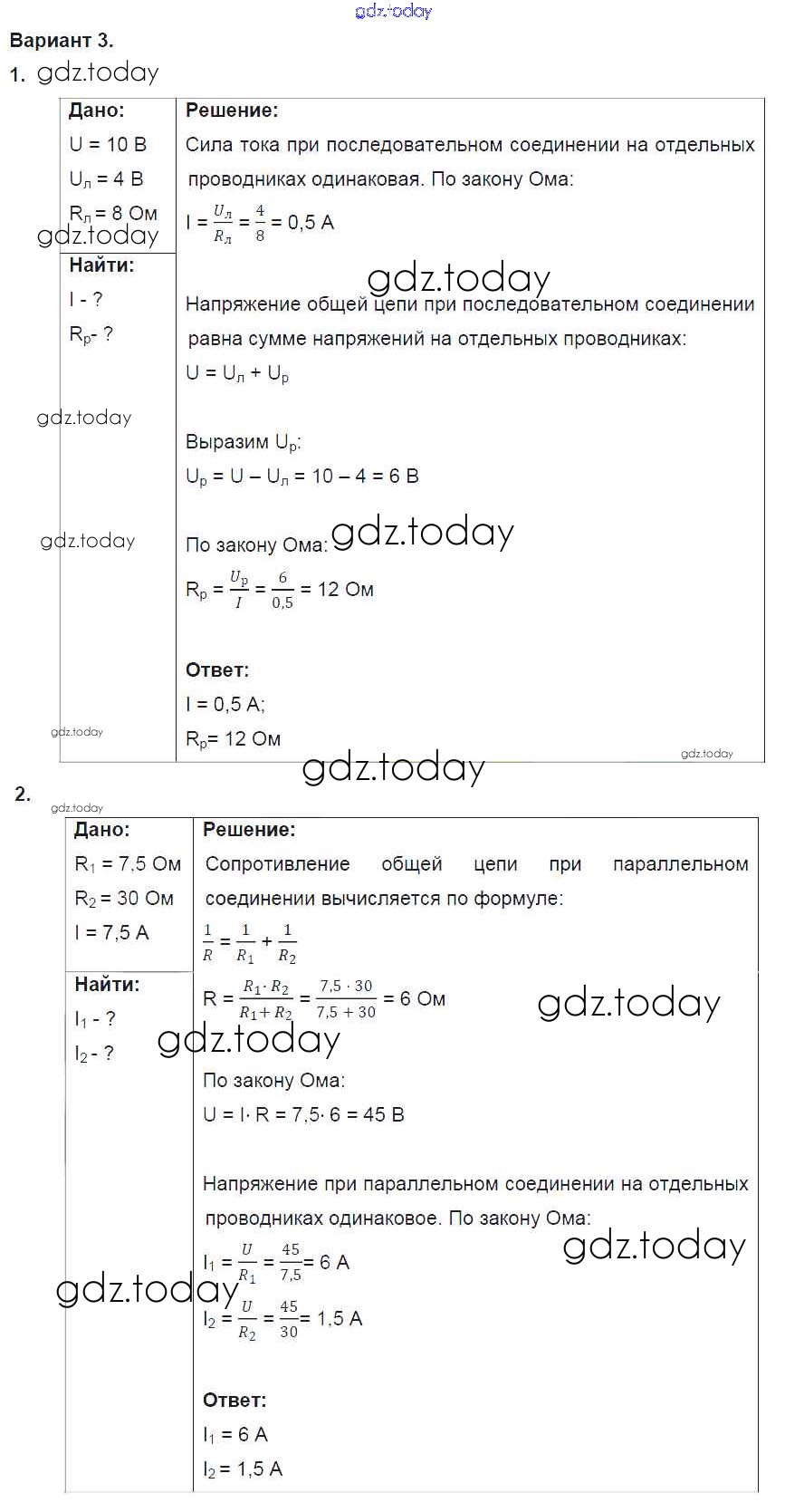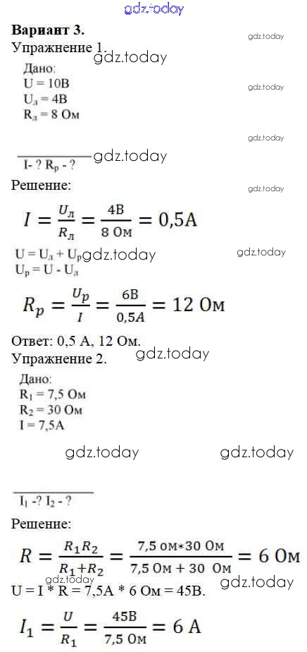 Ответы к СР №9. Соединение проводников. Варианты Решение к самостоятельным работам 3 Дидактическим материалам по Физике для 8 класса Марон Дрофа Вертикаль 2016