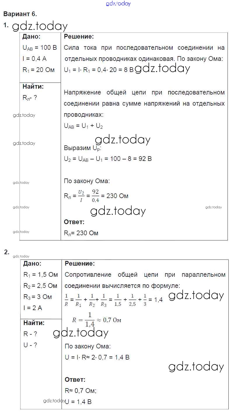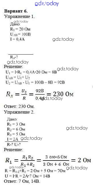 Ответы к СР №9. Соединение проводников. Варианты Решение к самостоятельным работам 6 Дидактическим материалам по Физике для 8 класса Марон Дрофа Вертикаль 2016