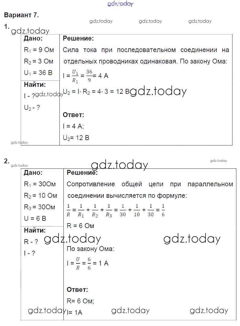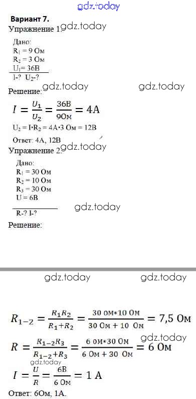 Ответы к СР №9. Соединение проводников. Варианты Решение к самостоятельным работам 7 Дидактическим материалам по Физике для 8 класса Марон Дрофа Вертикаль 2016