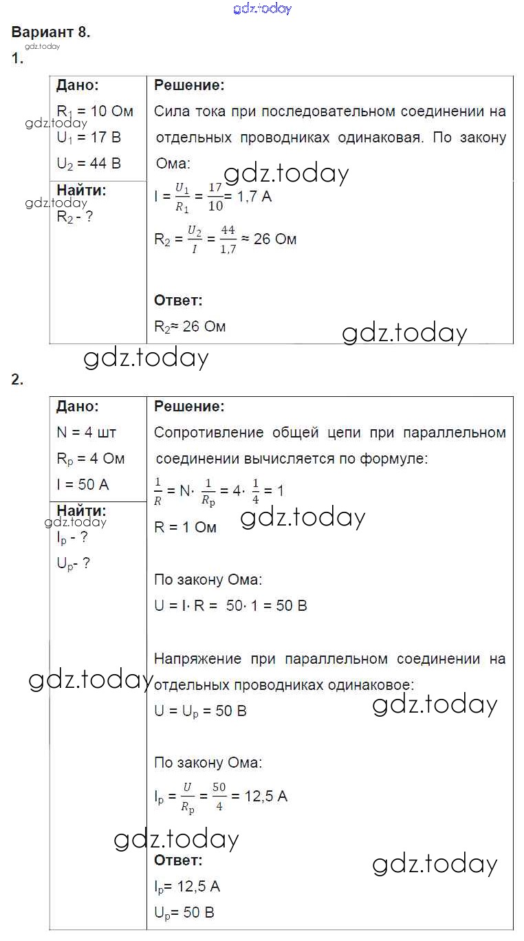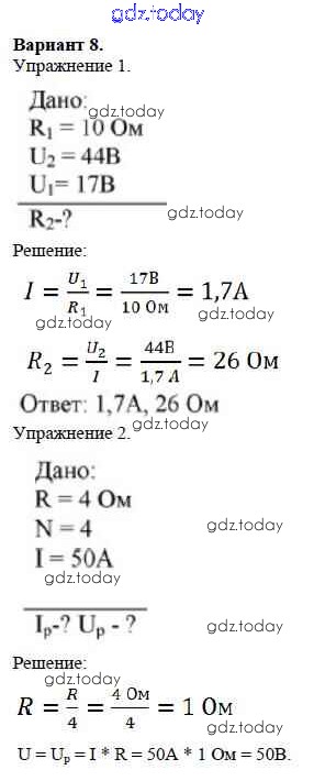 Ответы к СР №9. Соединение проводников. Варианты Решение к самостоятельным работам 8 Дидактическим материалам по Физике для 8 класса Марон Дрофа Вертикаль 2016
