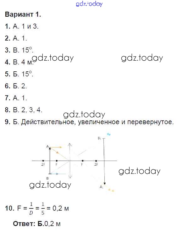Ответы к Тест №10. Оптические явления. Варианты Решение к тестам для самоконтроля 1 Дидактическим материалам по Физике для 8 класса Марон Дрофа Вертикаль 2016