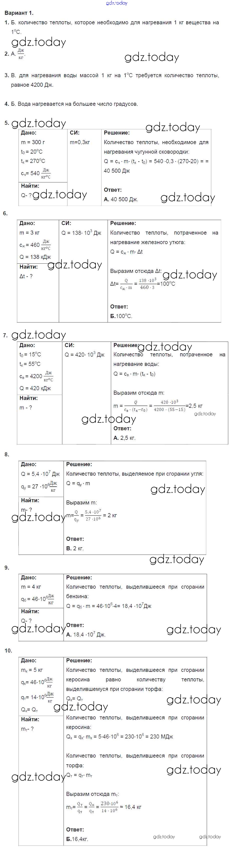 Ответы к Тест №2. Количество теплоты. Энергия топлива. Варианты Решение к тестам для самоконтроля 1 Дидактическим материалам по Физике для 8 класса Марон Дрофа Вертикаль 2016