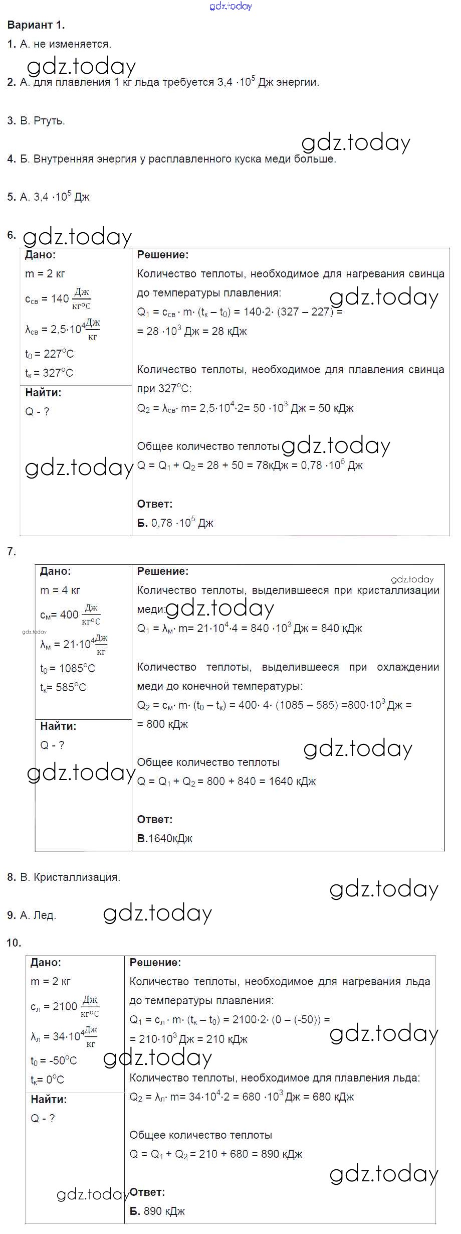 Ответы к Тест №3. Плавление и отвердевание. Варианты Решение к тестам для самоконтроля 1 Дидактическим материалам по Физике для 8 класса Марон Дрофа Вертикаль 2016