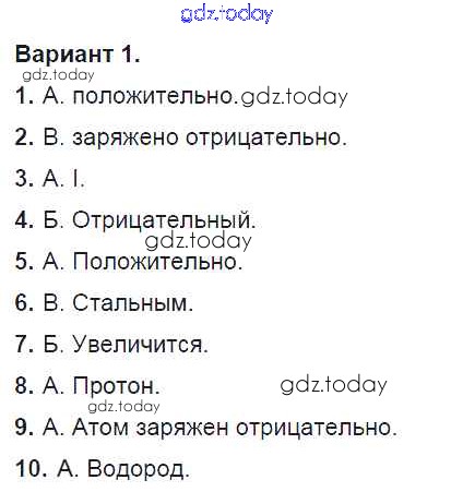 Ответы к Тест №5. Электризация тел. Электрическое поле. Строение атома. Варианты Решение к тестам для самоконтроля 1 Дидактическим материалам по Физике для 8 класса Марон Дрофа Вертикаль 2016