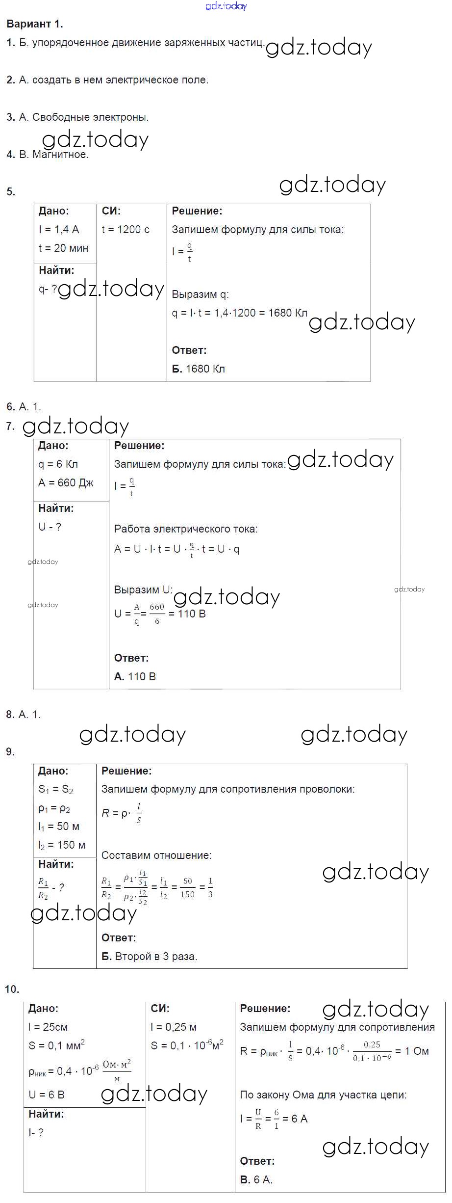 На страницах сайта gdz.today вы найдете учебный и вспомогательный материал, направленный на улучшения знаний школьной программы. ГДЗ - онлайн мир знаний Тест №6.Сила тока. Напряжение. Сопротивление. Закон Ома для участка цепи. Варианты Решение к тестам для самоконтроля 1 Дидактическим материалам по Физике для 8 класса Марон Дрофа Вертикаль 2016
