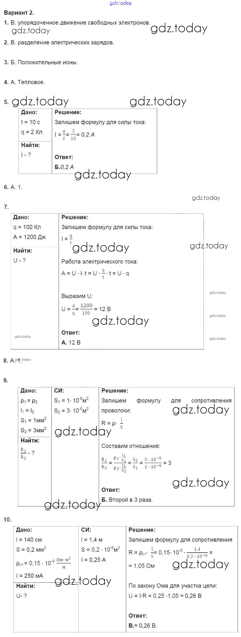 На страницах сайта gdz.today вы найдете учебный и вспомогательный материал, направленный на улучшения знаний школьной программы. ГДЗ - онлайн мир знаний Тест №6.Сила тока. Напряжение. Сопротивление. Закон Ома для участка цепи. Варианты Решение к тестам для самоконтроля 2 Дидактическим материалам по Физике для 8 класса Марон Дрофа Вертикаль 2016