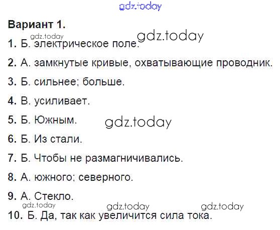Ответы к Тест №9. Электромагнитные явления. Варианты Решение к тестам для самоконтроля 1 Дидактическим материалам по Физике для 8 класса Марон Дрофа Вертикаль 2016