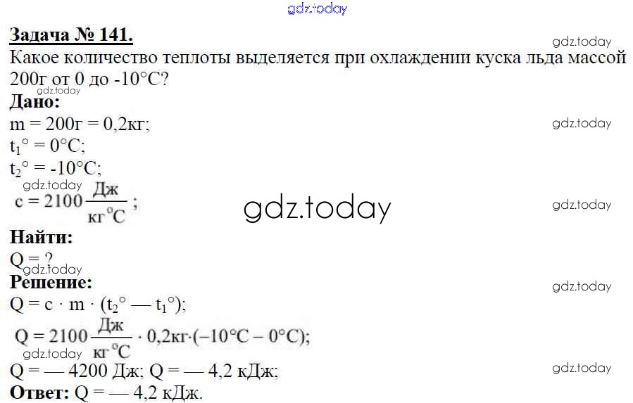 Ответы к Решение к заданиям 141 Учебнику по Физике для 8 класса Громов, Родина Просвещение 2018