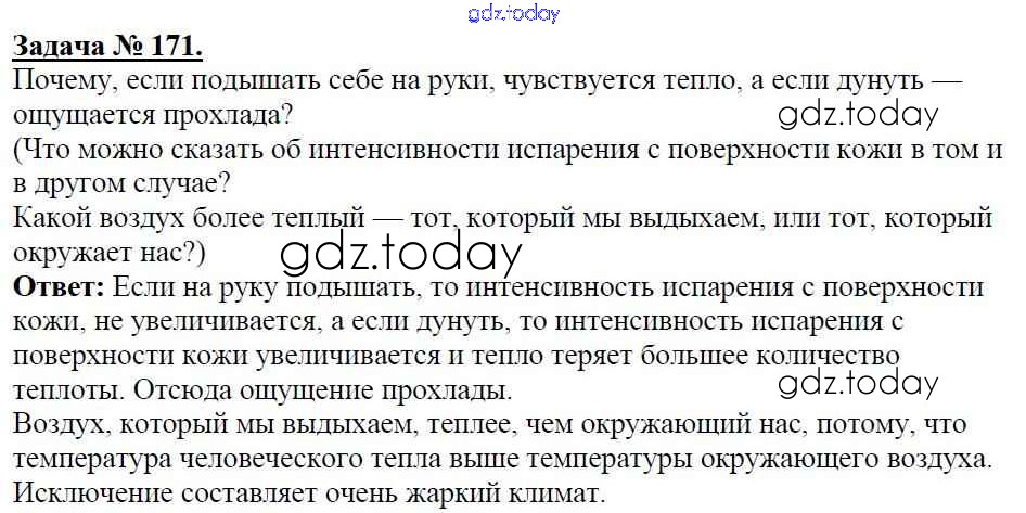 Ответы к Решение к заданиям 171 Учебнику по Физике для 8 класса Громов, Родина Просвещение 2018