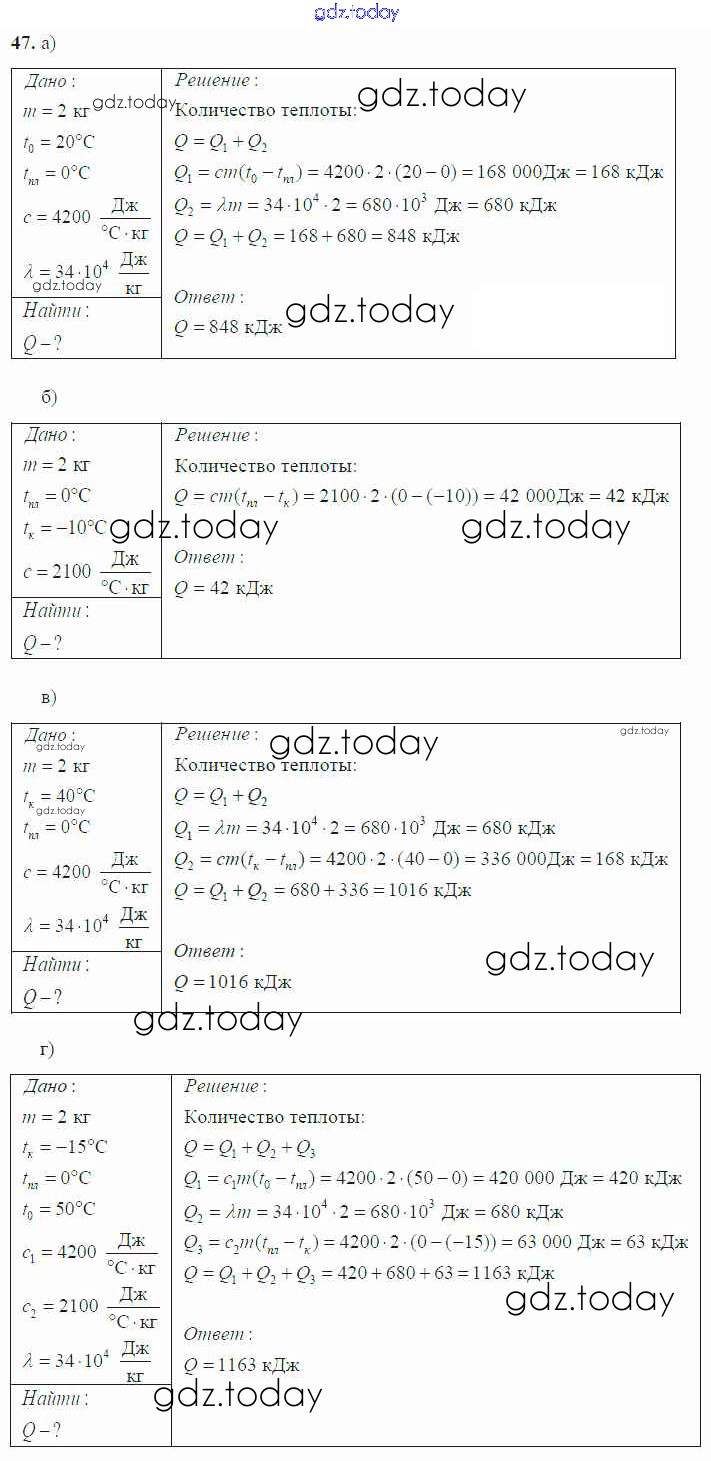 Ответы к Решение к заданиям 47 Учебнику по Физике для 8 класса Громов, Родина Просвещение 2018