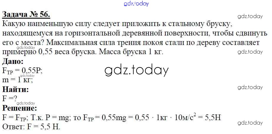 Ответы к Решение к заданиям 56 Учебнику по Физике для 8 класса Громов, Родина Просвещение 2018