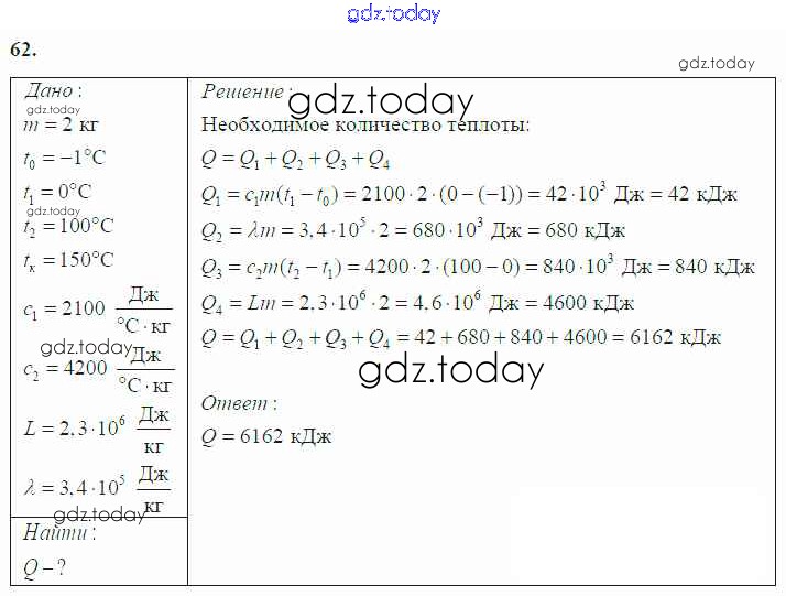 Ответы к Решение к заданиям 62 Учебнику по Физике для 8 класса Громов, Родина Просвещение 2018