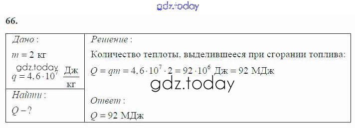 Ответы к Решение к заданиям 66 Учебнику по Физике для 8 класса Громов, Родина Просвещение 2018