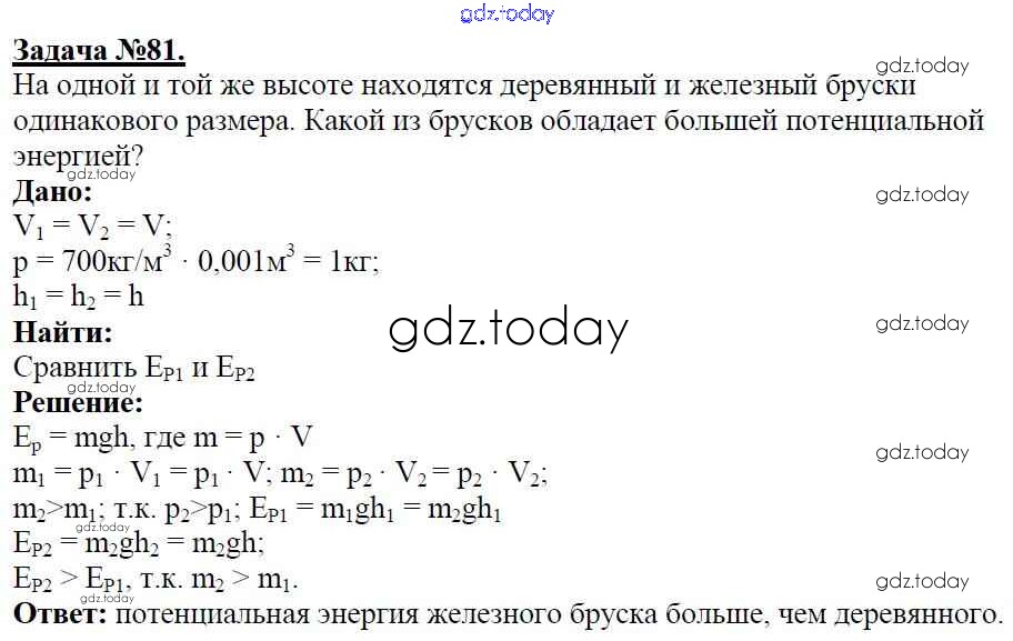 Ответы к Решение к заданиям 81 Учебнику по Физике для 8 класса Громов, Родина Просвещение 2018