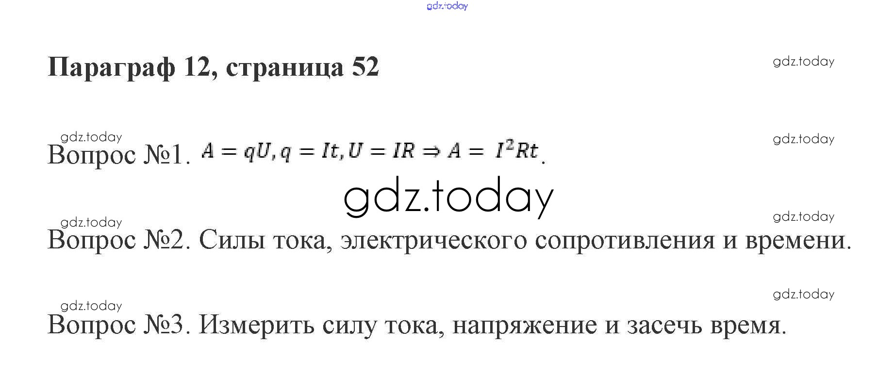 Ответы к Параграф 12 (Страницы) Решение к вопросам к параграфам (Параграфы) 52 Учебнику по Физике для 8 класса Кабардин Просвещение Архимед 2016