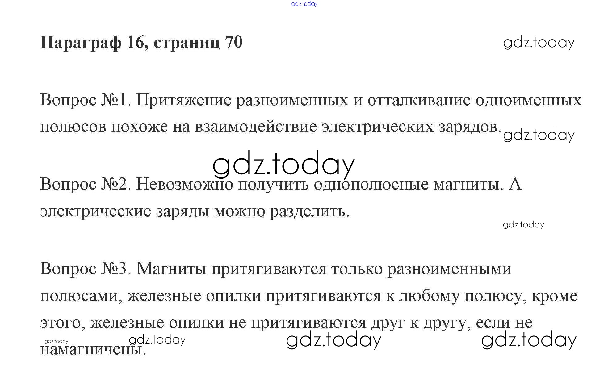 На страницах сайта gdz.today вы найдете учебный и вспомогательный материал, направленный на улучшения знаний школьной программы. ГДЗ - онлайн мир знаний Параграф 16 (Страницы) Решение к вопросам к параграфам (Параграфы) 70 Учебнику по Физике для 8 класса Кабардин Просвещение Архимед 2016