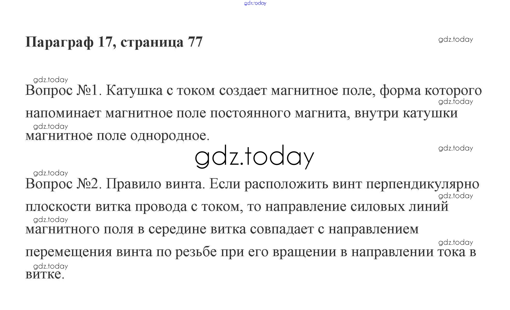 На страницах сайта gdz.today вы найдете учебный и вспомогательный материал, направленный на улучшения знаний школьной программы. ГДЗ - онлайн мир знаний Параграф 17 (Страницы) Решение к вопросам к параграфам (Параграфы) 77 Учебнику по Физике для 8 класса Кабардин Просвещение Архимед 2016