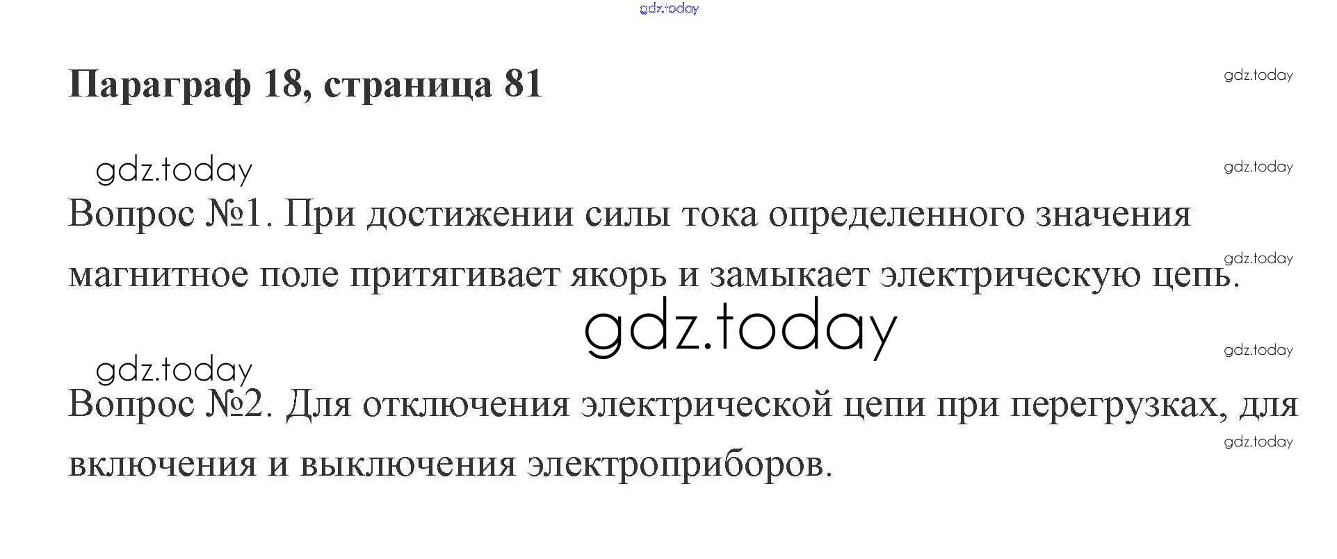 На страницах сайта gdz.today вы найдете учебный и вспомогательный материал, направленный на улучшения знаний школьной программы. ГДЗ - онлайн мир знаний Параграф 18 (Страницы) Решение к вопросам к параграфам (Параграфы) 81 Учебнику по Физике для 8 класса Кабардин Просвещение Архимед 2016