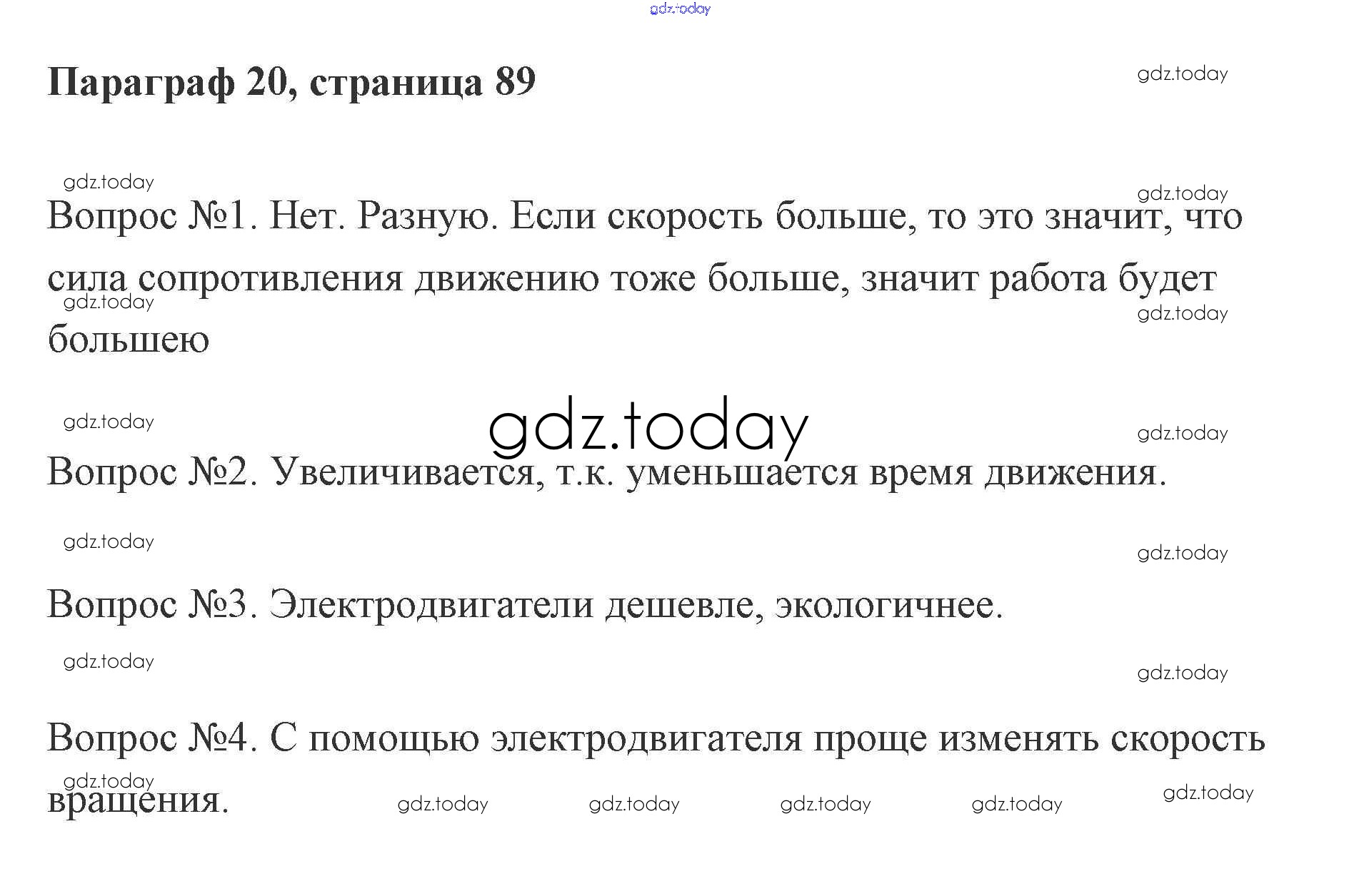 На страницах сайта gdz.today вы найдете учебный и вспомогательный материал, направленный на улучшения знаний школьной программы. ГДЗ - онлайн мир знаний Параграф 20 (Страницы) Решение к вопросам к параграфам (Параграфы) 89 Учебнику по Физике для 8 класса Кабардин Просвещение Архимед 2016