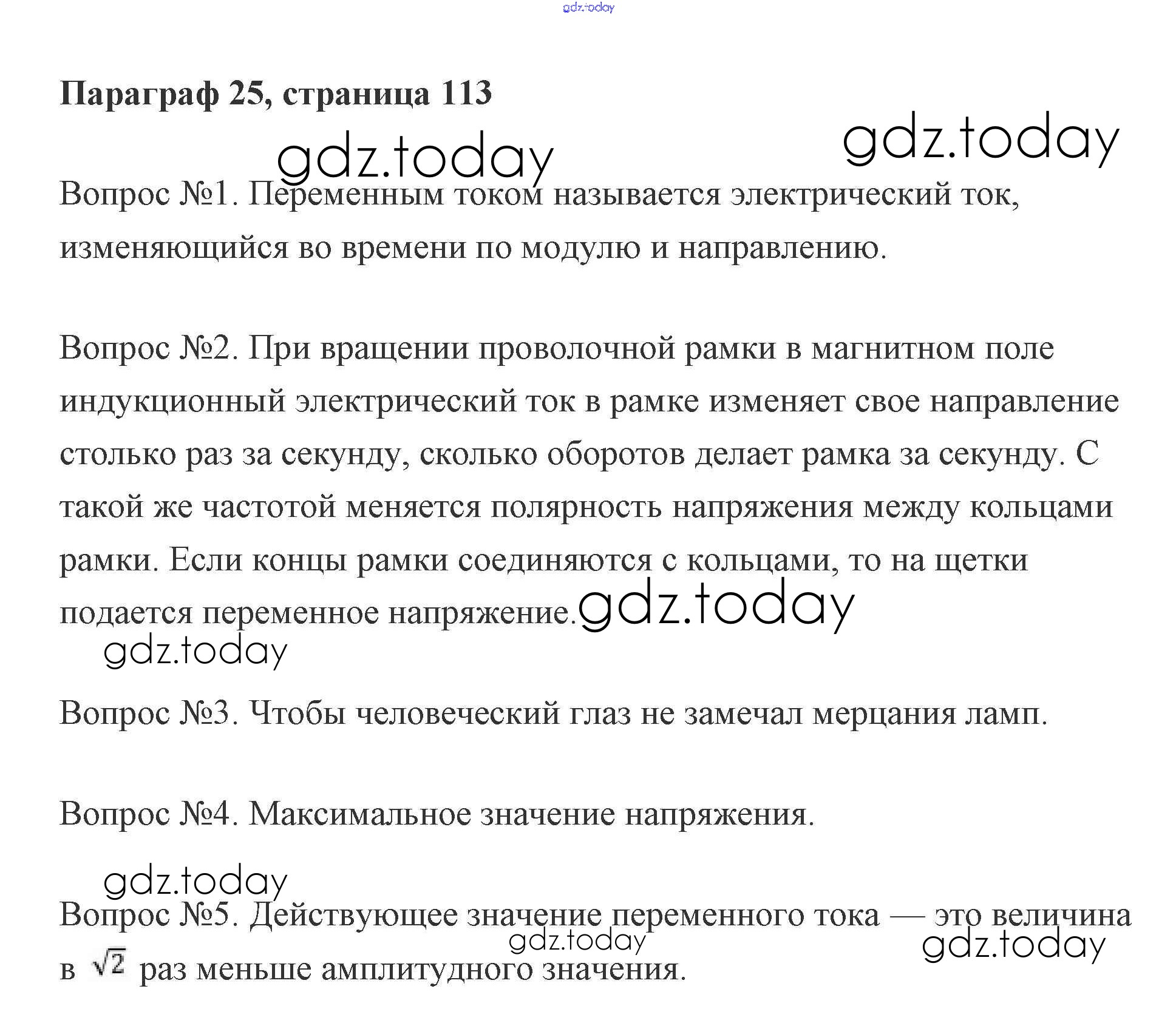 На страницах сайта gdz.today вы найдете учебный и вспомогательный материал, направленный на улучшения знаний школьной программы. ГДЗ - онлайн мир знаний Параграф 25 (Страницы) Решение к вопросам к параграфам (Параграфы) 113 Учебнику по Физике для 8 класса Кабардин Просвещение Архимед 2016
