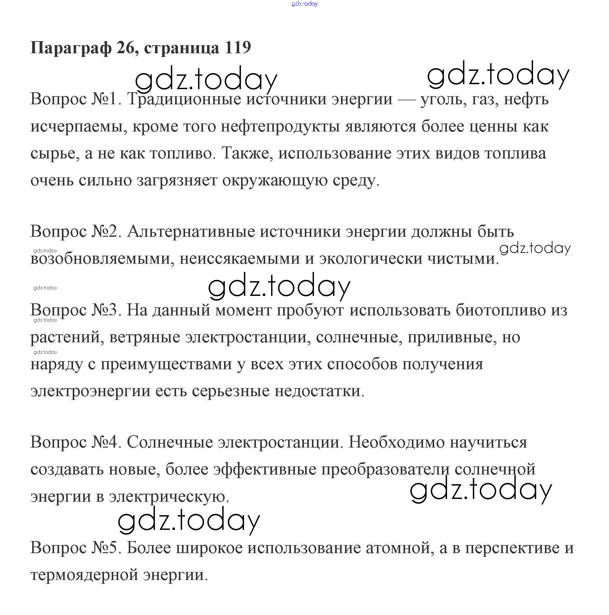 Ответы к Параграф 26 (Страницы) Решение к вопросам к параграфам (Параграфы) 119 Учебнику по Физике для 8 класса Кабардин Просвещение Архимед 2016