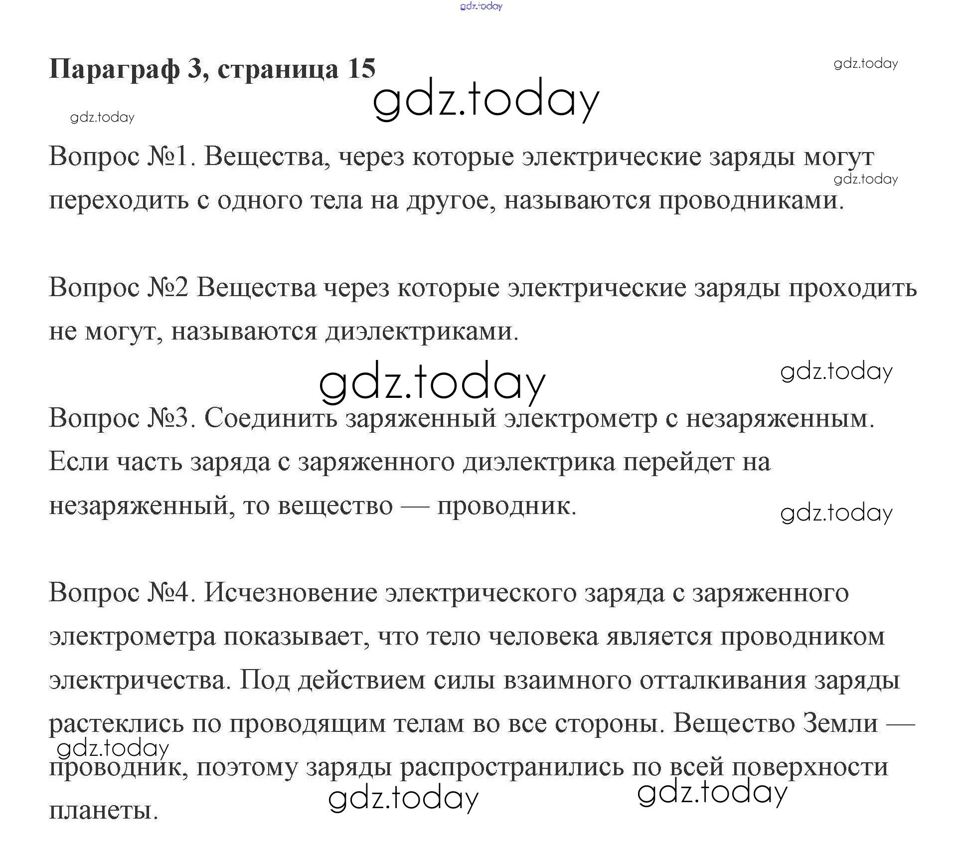 На страницах сайта gdz.today вы найдете учебный и вспомогательный материал, направленный на улучшения знаний школьной программы. ГДЗ - онлайн мир знаний Параграф 3 (Страницы) Решение к вопросам к параграфам (Параграфы) 15 Учебнику по Физике для 8 класса Кабардин Просвещение Архимед 2016