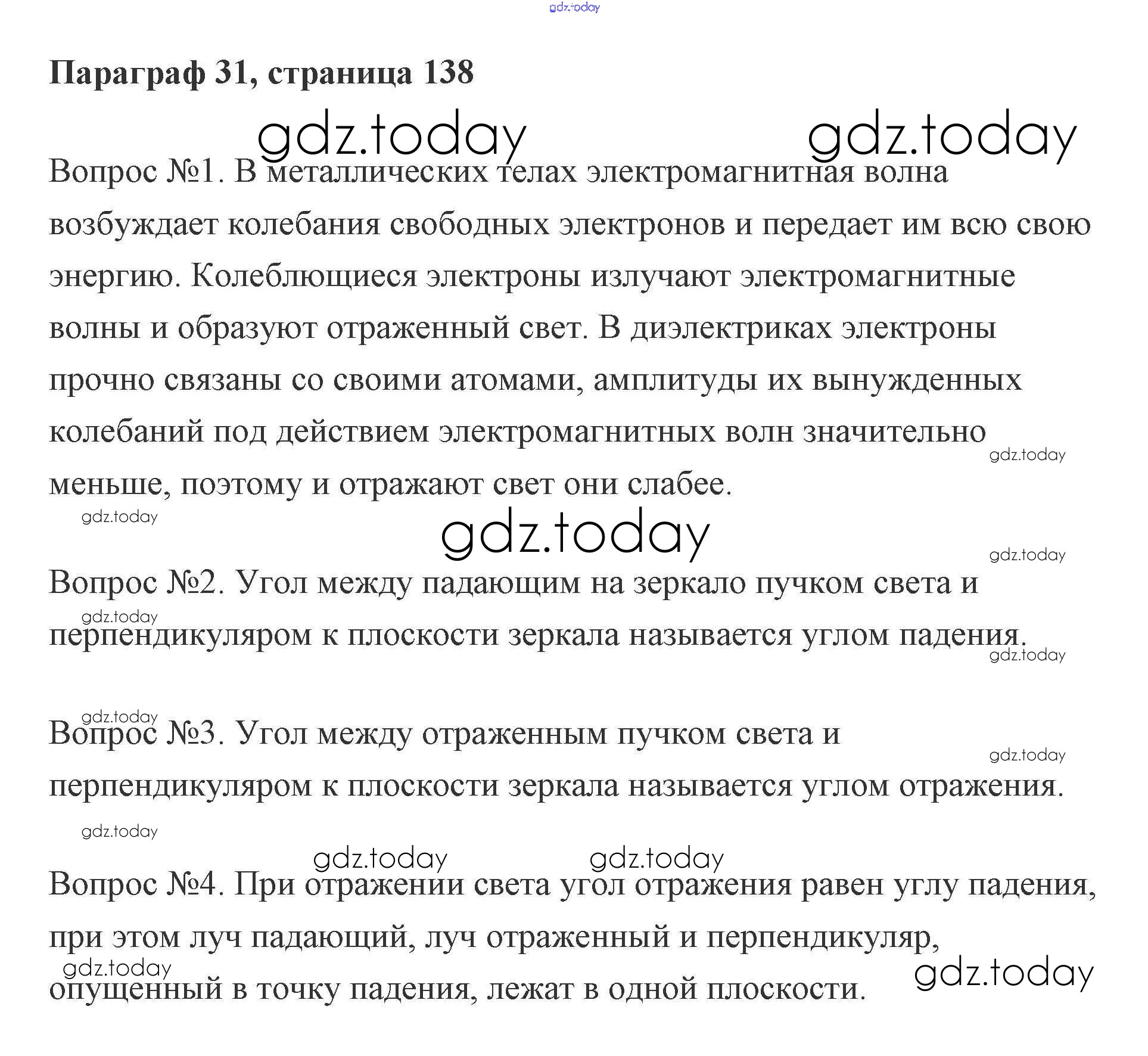 На страницах сайта gdz.today вы найдете учебный и вспомогательный материал, направленный на улучшения знаний школьной программы. ГДЗ - онлайн мир знаний Параграф 31 (Страницы) Решение к вопросам к параграфам (Параграфы) 138 Учебнику по Физике для 8 класса Кабардин Просвещение Архимед 2016