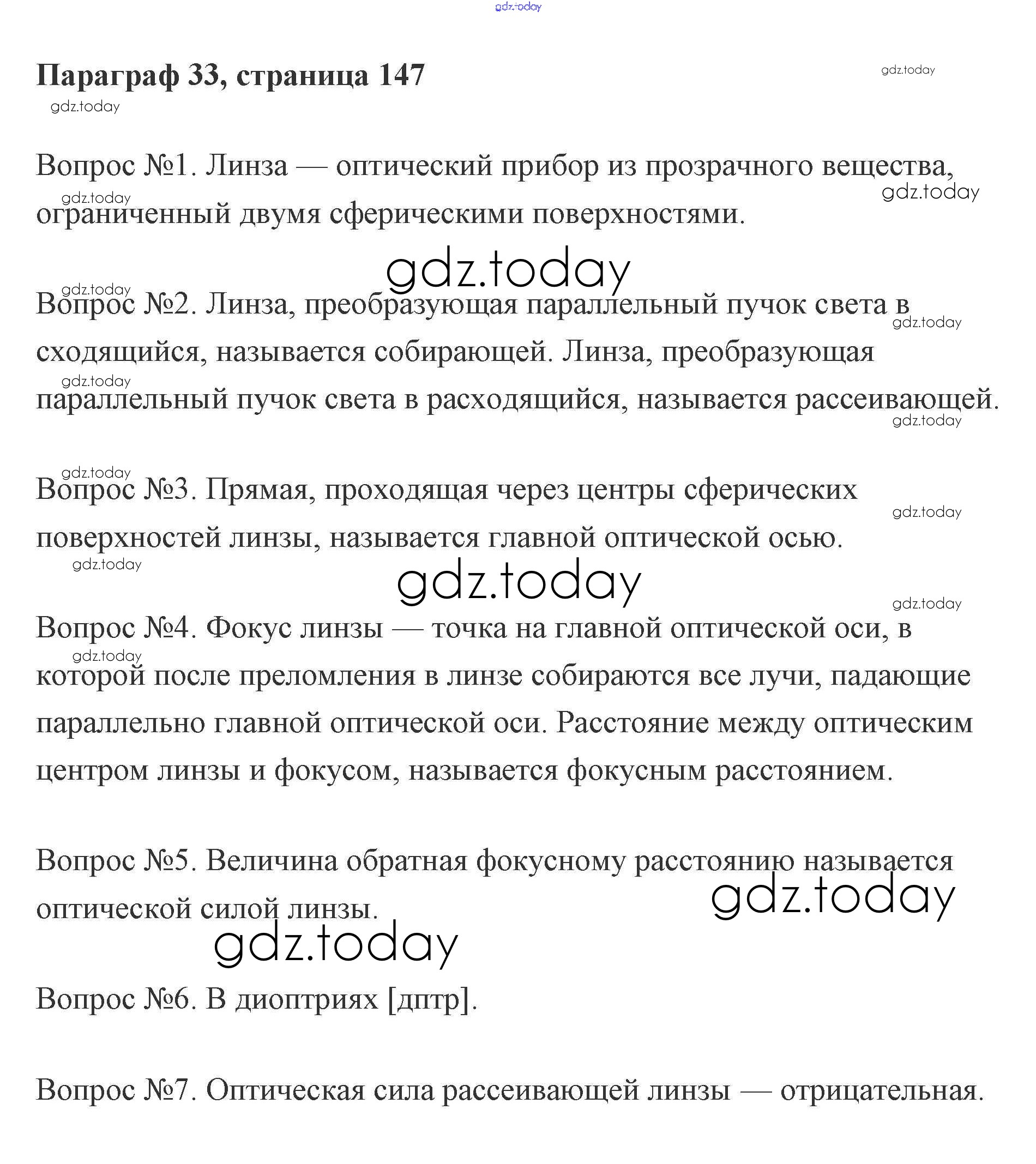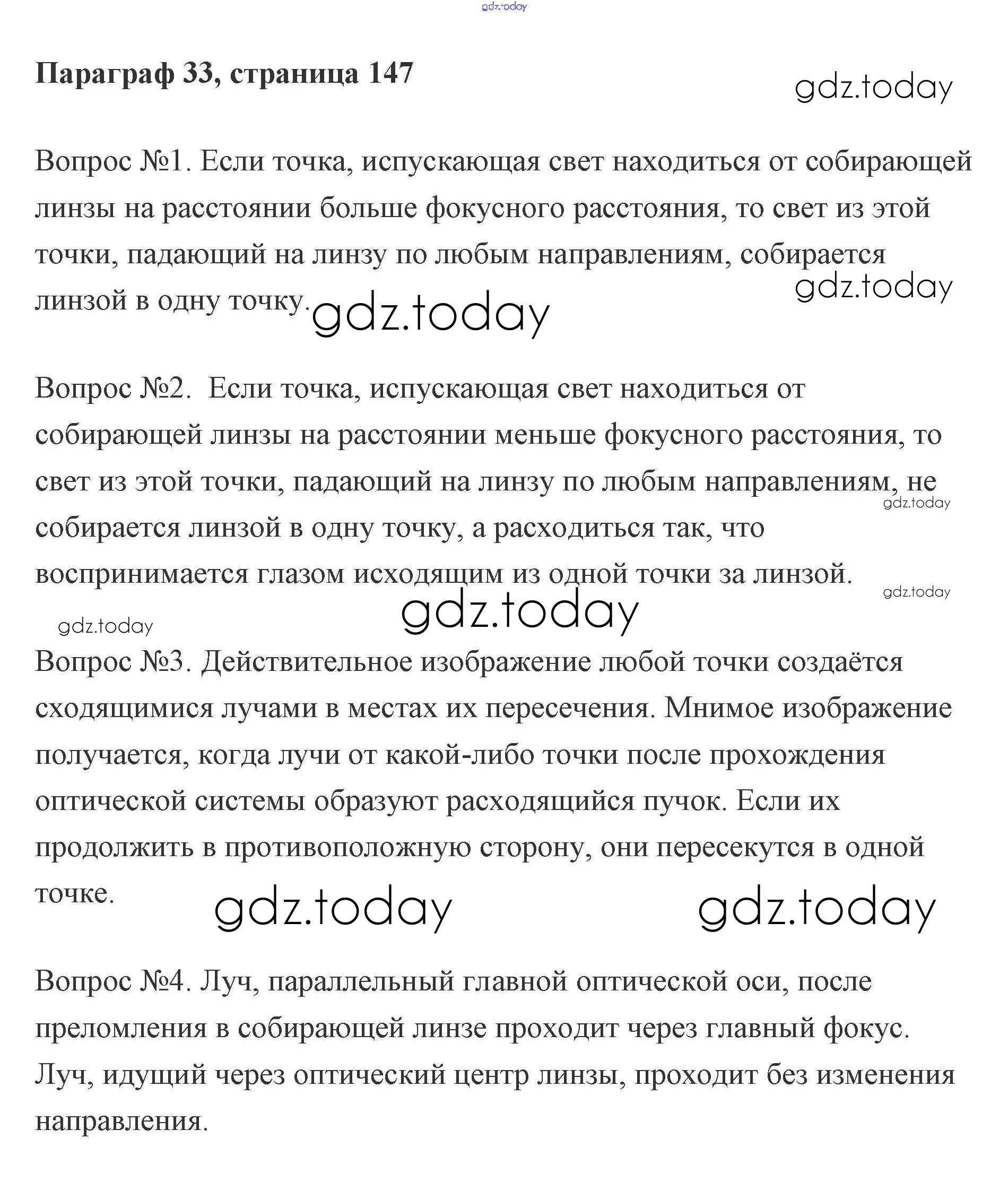 На страницах сайта gdz.today вы найдете учебный и вспомогательный материал, направленный на улучшения знаний школьной программы. ГДЗ - онлайн мир знаний Параграф 33 (Страницы) Решение к вопросам к параграфам (Параграфы) 147 Учебнику по Физике для 8 класса Кабардин Просвещение Архимед 2016