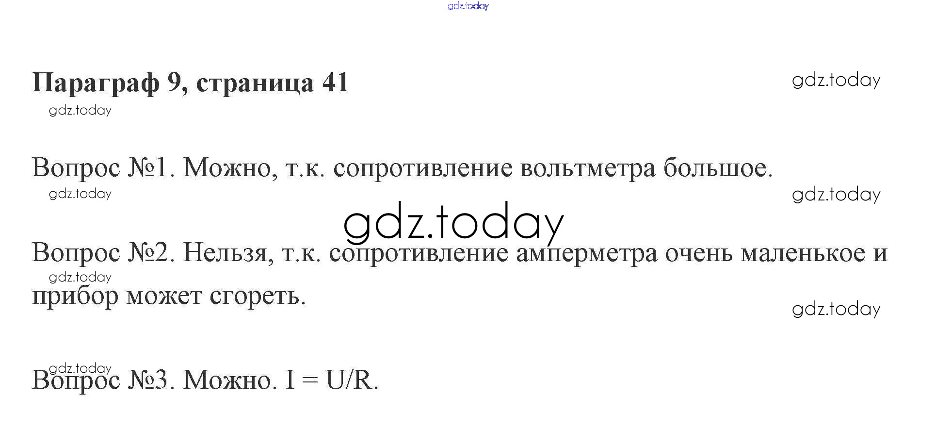 На страницах сайта gdz.today вы найдете учебный и вспомогательный материал, направленный на улучшения знаний школьной программы. ГДЗ - онлайн мир знаний Параграф 9 (Страницы) Решение к вопросам к параграфам (Параграфы) 41 Учебнику по Физике для 8 класса Кабардин Просвещение Архимед 2016