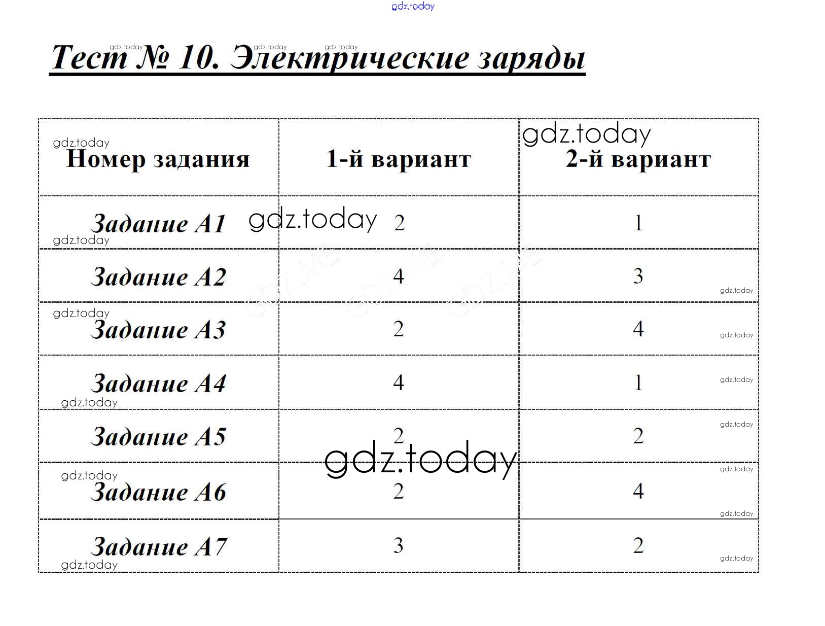 На страницах сайта gdz.today вы найдете учебный и вспомогательный материал, направленный на улучшения знаний школьной программы. ГДЗ - онлайн мир знаний Решение к тестам Тест 10. Электрические заряды Контрольно-измерительным материалам (КИМ) по Физике для 8 класса Бобошина Экзамен 2014