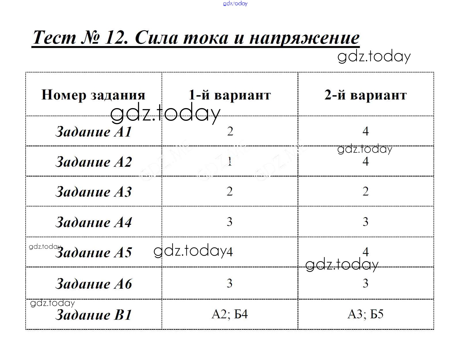 На страницах сайта gdz.today вы найдете учебный и вспомогательный материал, направленный на улучшения знаний школьной программы. ГДЗ - онлайн мир знаний Решение к тестам Тест 12. Сила тока и напряжение Контрольно-измерительным материалам (КИМ) по Физике для 8 класса Бобошина Экзамен 2014