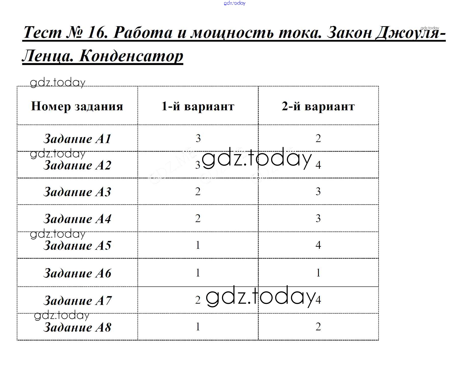 На страницах сайта gdz.today вы найдете учебный и вспомогательный материал, направленный на улучшения знаний школьной программы. ГДЗ - онлайн мир знаний Решение к тестам Тест 16. Работа и мощность тока. Закон Джоуля - Ленца. Конденсатор Контрольно-измерительным материалам (КИМ) по Физике для 8 класса Бобошина Экзамен 2014