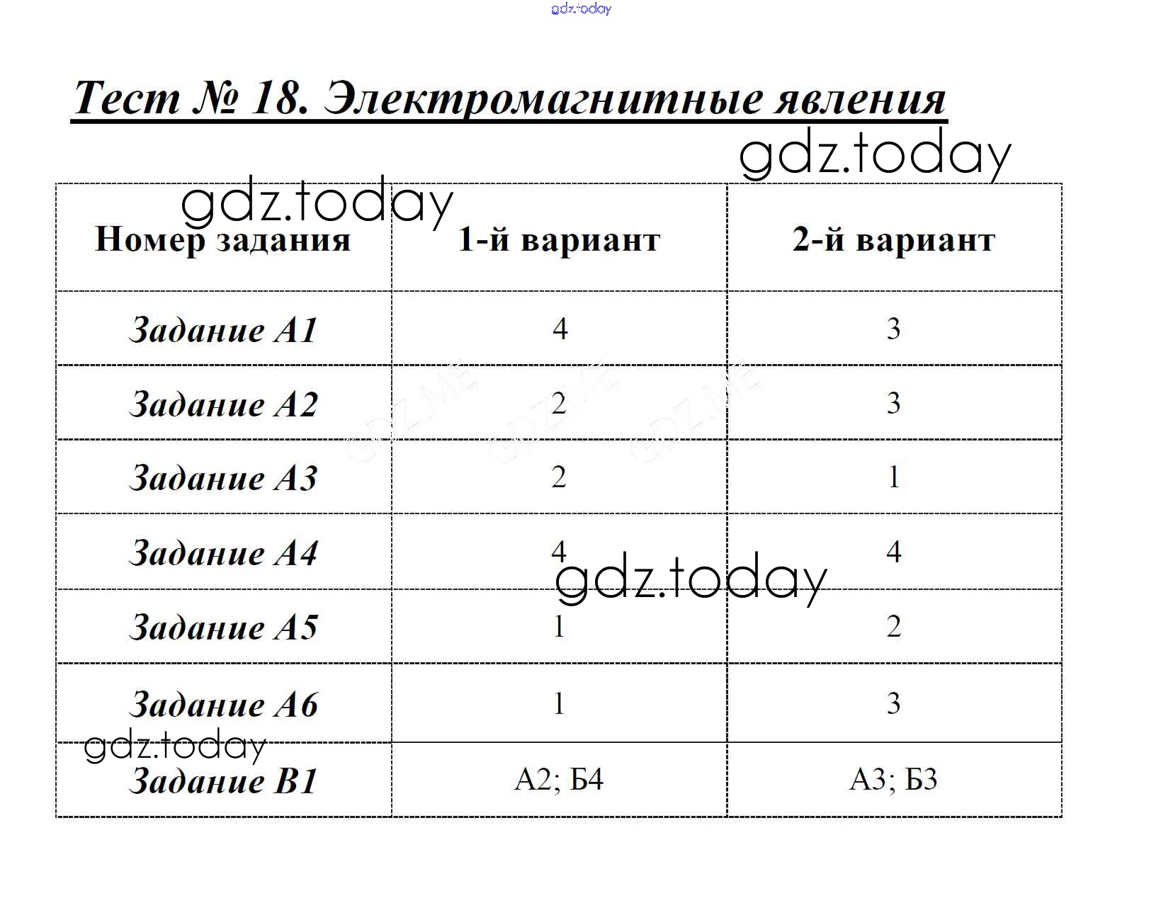 На страницах сайта gdz.today вы найдете учебный и вспомогательный материал, направленный на улучшения знаний школьной программы. ГДЗ - онлайн мир знаний Решение к тестам Тест 18. Электромагнитные явления Контрольно-измерительным материалам (КИМ) по Физике для 8 класса Бобошина Экзамен 2014