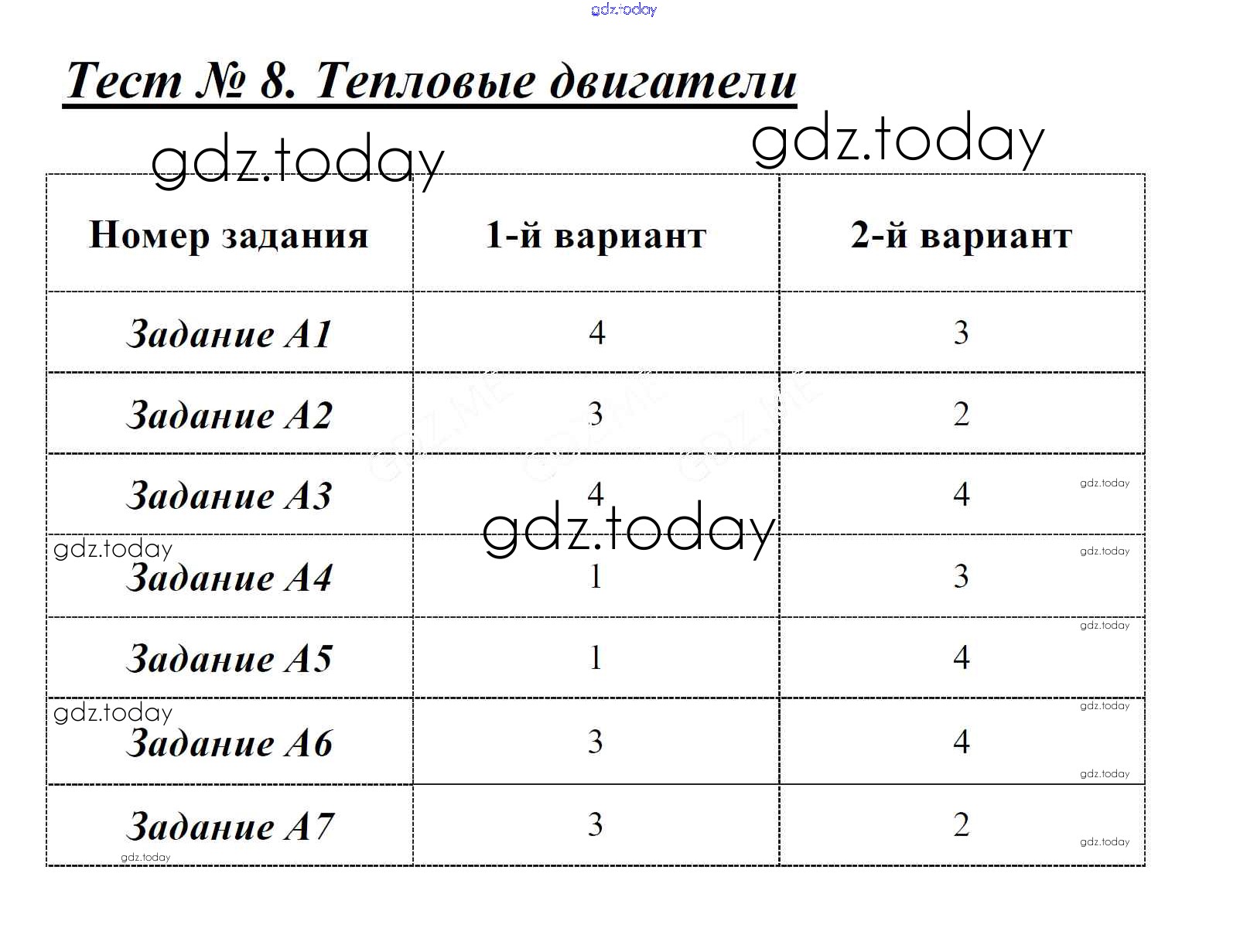На страницах сайта gdz.today вы найдете учебный и вспомогательный материал, направленный на улучшения знаний школьной программы. ГДЗ - онлайн мир знаний Решение к тестам Тест 8. Тепловые двигатели Контрольно-измерительным материалам (КИМ) по Физике для 8 класса Бобошина Экзамен 2014