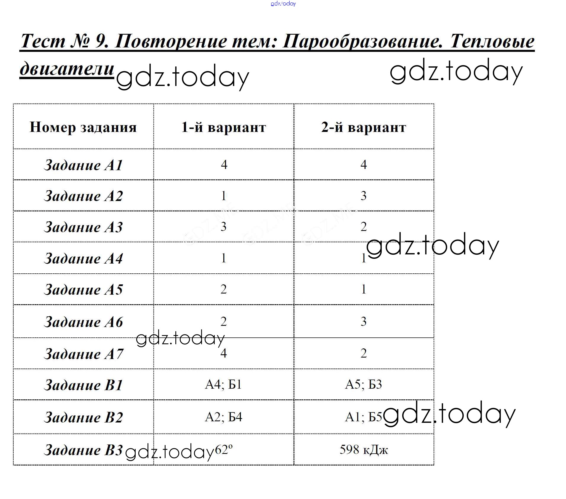На страницах сайта gdz.today вы найдете учебный и вспомогательный материал, направленный на улучшения знаний школьной программы. ГДЗ - онлайн мир знаний Решение к тестам Тест 9. Повторение тем - Парообразование. Тепловые двигатели Контрольно-измерительным материалам (КИМ) по Физике для 8 класса Бобошина Экзамен 2014