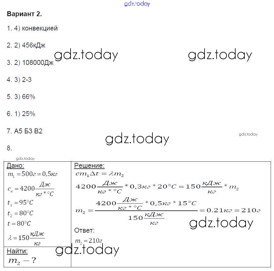 Ответы к Глава 1. Тепловые явления Решение к контрольным работам вариант-2 Контрольным и самостоятельным работам по Физике для 8 класса Громцева Экзамен УМК 2017