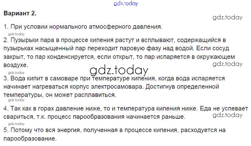 На страницах сайта gdz.today вы найдете учебный и вспомогательный материал, направленный на улучшения знаний школьной программы. ГДЗ - онлайн мир знаний СР №15. Кипение Решение к самостоятельным работам вариант-2 Контрольным и самостоятельным работам по Физике для 8 класса Громцева Экзамен УМК 2017