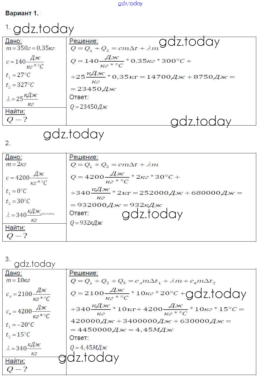 Ответы к СР №18. Тепловые процессы Решение к самостоятельным работам вариант-1 Контрольным и самостоятельным работам по Физике для 8 класса Громцева Экзамен УМК 2017