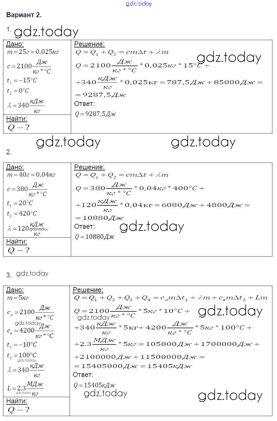 Ответы к СР №18. Тепловые процессы Решение к самостоятельным работам вариант-2 Контрольным и самостоятельным работам по Физике для 8 класса Громцева Экзамен УМК 2017