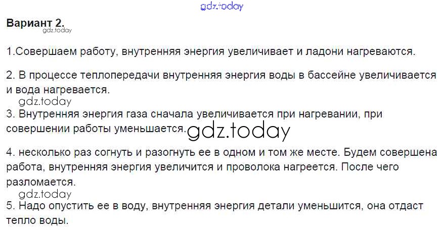 На страницах сайта gdz.today вы найдете учебный и вспомогательный материал, направленный на улучшения знаний школьной программы. ГДЗ - онлайн мир знаний СР №2. Способы изменения внутренней энергии тела Решение к самостоятельным работам вариант-2 Контрольным и самостоятельным работам по Физике для 8 класса Громцева Экзамен УМК 2017